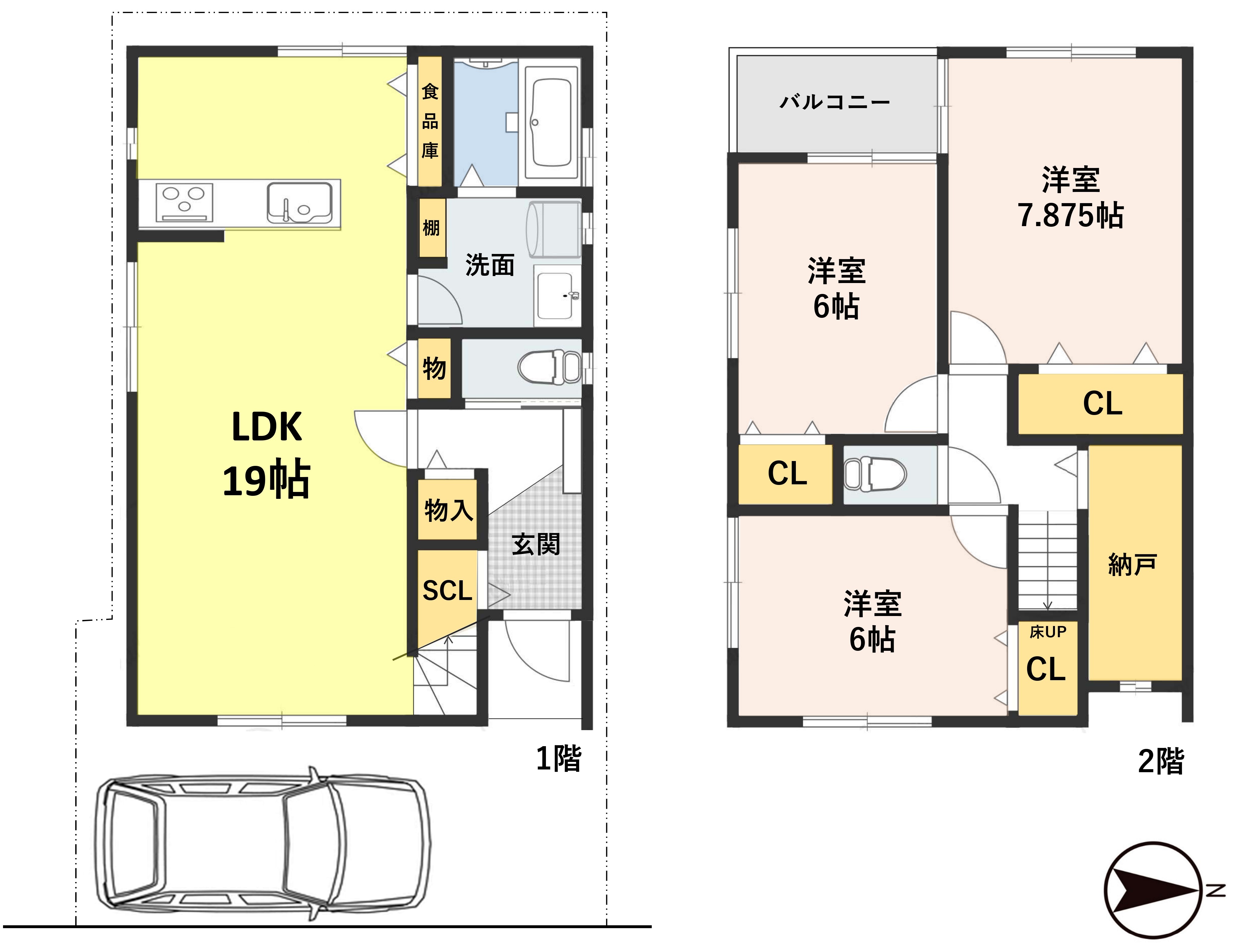 | 備考 | 木造2階建プラン、延床面積93.95㎡(28.41坪)、建物プラン価格2,200万円(税込) 別途要(建築確認費用、水道口径変更費用、地盤調査費用、地盤改良が必要な場合の地盤改良工事費用、外構工事費用) | ||